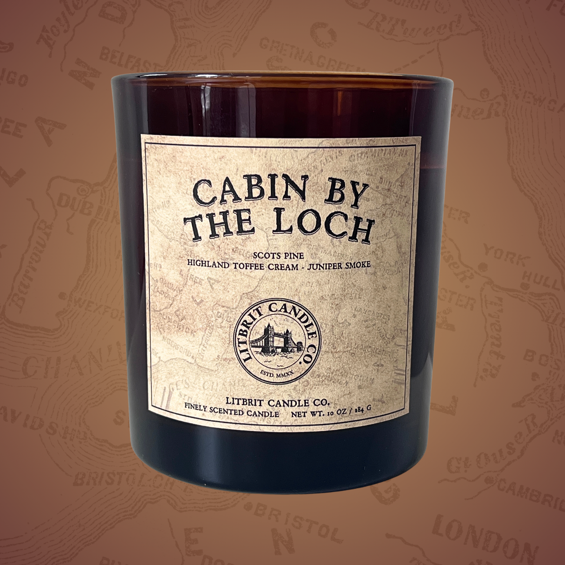 A secluded Highland cabin by the water’s edge, where pine-scented air drifts through the stillness. Sweet toffee cream warms the hearth, while the quiet curl of juniper smoke lingers in the dusk.